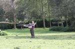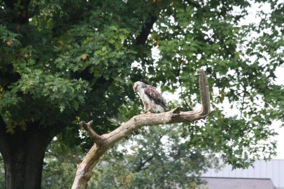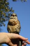 . Ook hadden ze een gast meegenomen, Marcus van Eagle Encounters uit Zuid-Afrika. ZIj hebben hem tijdens hun vakantie/familiebezoek leren kennen en ook zijn manier van werken met zijn vogels. En nu was het de beurt van Marcus om kennis te maken met Falconcrest. Als allereerste bewees hij dat hij een uistekende zoeker was. Hij heeft Kayley namelijk weten te vinden in de boom! Jeetje wat had zij een schutkleur!!! Het zag er gewoon uit als een takje met een bosje dode bladeren eraan
