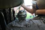 Maar we kregen haar niet gevonden.. Dan eens proberen Kiran erbij te halen. Kiran is haar broertje en gisteren ging ze met hem communiceren tijdens zijn vliegmoment. We hoopte dat ze dit nu ook weer zou doen en we daaruit op konden maken waar ze zich bevind. Toen ik hem ging pakken, ging hij net in bad! Wauw wat leuk om te zien hoe een bosuil baddert! Kijk zelf maar