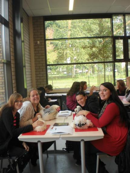Tijdens het dierenverzorgen moest ik Jasmijn en Ellen het een en ander uitleggen en uiteindelijk kwam Ashley ons ook verder helpen en dat was bij de chinchilla's
