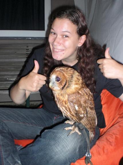 Dit omdat het een nachtuil is en omdat we wel eens wouden beleven hoe dat zou zijn nadat Ellen haar ervaringen had gedeeld met het vliegen van Sía (Kerkuil, zus van Yoshi) in het donker. HET WAS MEGA AWESOME!!!!!