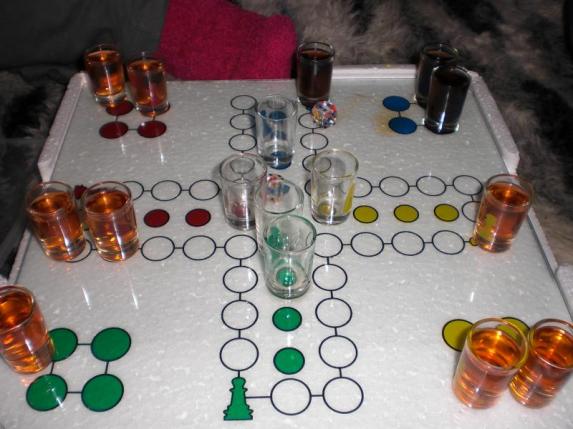 . Rond hald 9-9 uur arriveerde Jasmijn ook en waren we compleet. We startte onze parteehhh met een spelletje mens-erger-je-niet maar dan gevulde shotglasjes ipv pionnetjes