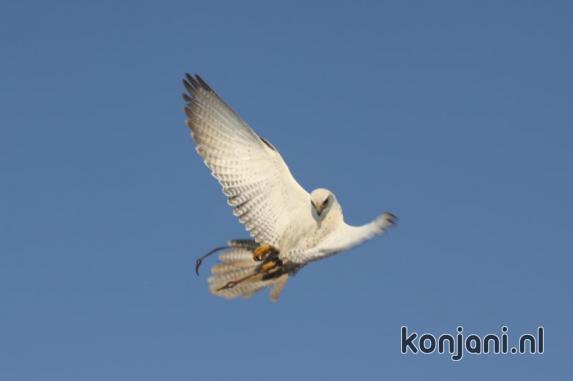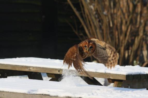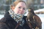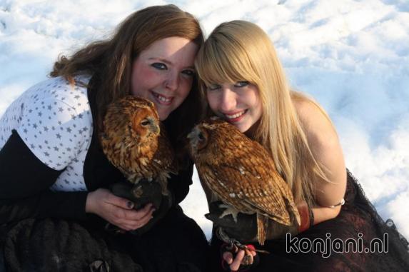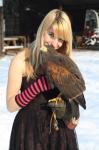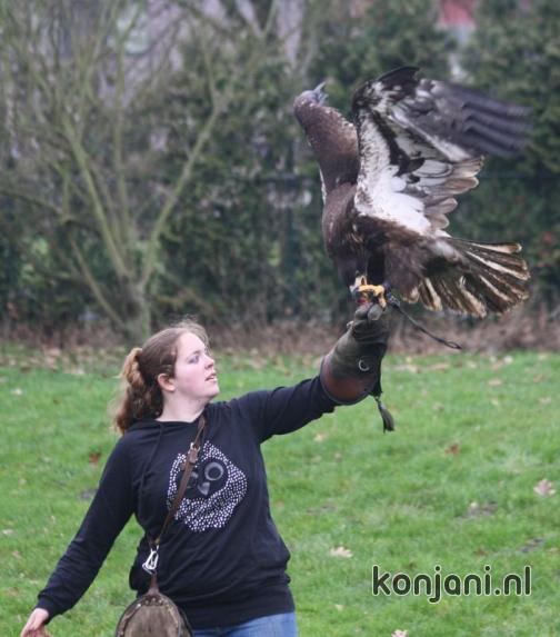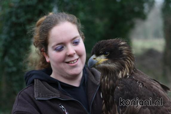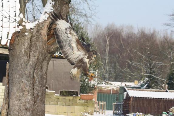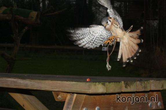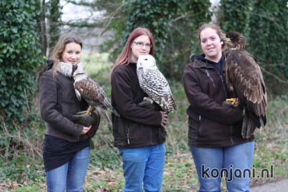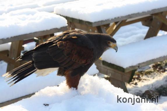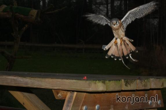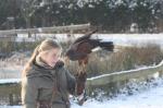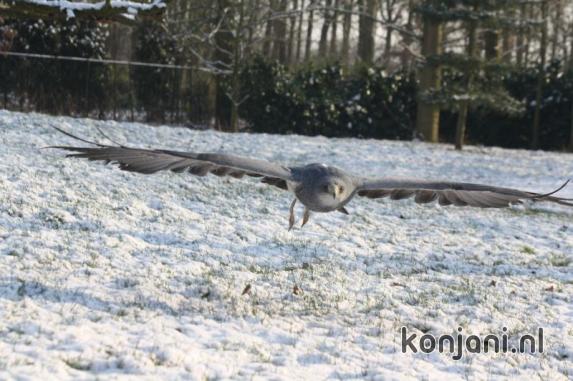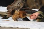 So he flew away when I walked towards him. Laura K took him in and we fed him by hand instead of flying. We could not manage to fly Amigo & Doenja because everybody was frozen to the bone and we all went inside to warm up.